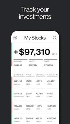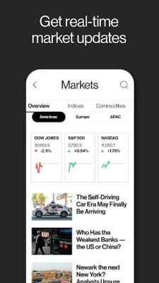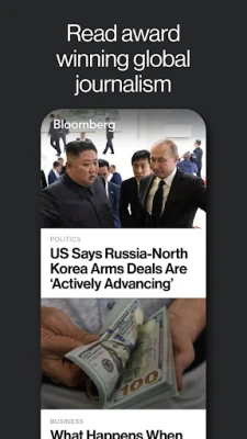 Tęskite savo finansų valdymą su išmanumu ir patogumu. Su asmenine stebimųjų sąrašu galite lengvai sekti savo investicijų portfelio efektyvumą, pridedant akcijas, investicinius fondus, ETF ar valiutas, ir gauti susijusias naujienas. Įsitraukite į globalios finansų, verslo, ekonomikos ir investicijų ekspertų įžvalgas, tiesiogiai transliuodami Bloomberg TV ir Bloomberg Radio, taip pat atrasdami platų tinklalaidžių katalogą. Net ir keliaujant, galite atsisiųsti naujausią „Businessweek" numerį ir skaityti jį neprisijungę, o su „Android Auto" funkcija, Bloomberg radijas, tinklalaidės ir garso straipsniai lydės jus kelyje, užtikrinant nepertraukiamą informacijos srautą. Bloomberg suteikia neribotą prieigą prie viso turinio programėlėje ir svetainėje (susiejus paskyrą), leidžiant priimti labiau pagrįstus ir savalaikius sprendimus.