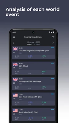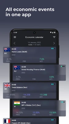 Ar kada nors jautėtės atsilikę nuo dinamiškų finansų rinkų įvykių? „Forex economic calendar" – tai Jūsų patikimas skaitmeninis asistentas, sukurtas palaikyti Jus nuolat informuotus. Ši išmani programėlė, integruota tiesiai į Jūsų Android įrenginio ekraną kaip patogus valdiklis, realiuoju laiku atvaizduoja visus aktualius makroekonominius duomenis ir svarbius įvykius. Daugiau jokių praleistų kritinių momentų – su „Forex economic calendar" Jūs visada būsite pasirengę priimti apgalvotus sprendimus, reikalingus sėkmingai prekybai.