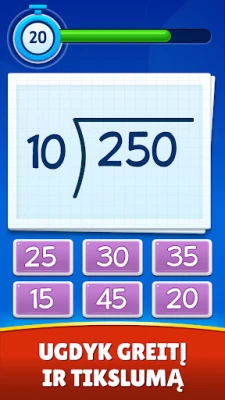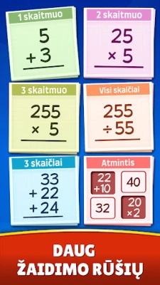 "Matematikos žaidimas" sukurta padėti vaikams pamilti skaičius ir paversti mokymąsi tikru nuotykiu. Nesvarbu, ar ieškote matematikos iššūkių pradinių klasių mokiniams, ar smagių žaidimų 8-10 metų vaikams, ši programėlė patenkins visus lūkesčius. Čia rasite daugybę žaidimo režimų, nuo skaičių žaidimų ir sudėties užduočių, iki daugybos lentelės praktikos ir įvairių kitų smagių matematikos užduočių, skirtų padėti vaikams lavinti esminius įgūdžius.