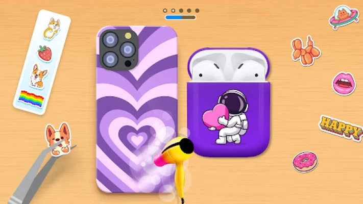 Čia rasite daugybę funkcijų, kurios įkvėps jūsų vidinį menininką. Kurkite akį traukiančius, personalizuotus telefono dėklus, naudodami begales spalvų ir raštų, kad atskleistumėte savo unikalų stilių. Išlaisvinkite fantaziją ir suprojektuokite stilingas, ryškias ausines, tobulai derančias prie jūsų dėklo, arba pritaikykite ausinukus gyvybingomis spalvomis bei unikaliais piešiniais. Be to, tapsite tikru detektyvu ir restauratoriumi – atkurkite pažeistus telefono dėklus, prikeldami juos naujam gyvenimui su kruopštumu ir kūryba. Eksperimentuokite su akrilo dažų ar „tie-dye" meno technikomis, pritaikydami jas tiesiai ant jūsų kūrinių, ir papuoškite viską daugybe šaunių lipdukų, suteikiančių išskirtinumo. Prieš pradedant kurti, nepamirškite nuvalyti telefono nuo dulkių ir purvo, kad jūsų meno kūrinys būtų nepriekaištingas.
