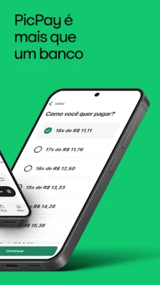 „PicPay" – tai daugiau nei skaitmeninė sąskaita; tai visapusiškas finansinių sprendimų paketas. Investuokite įvairius portfelius tiesiai iš programėlės, mokėkite sąskaitas dalimis iki 36 mėnesių su kredito kortele ir gaukite nuolatinį cashback už įvairius pirkinius. Netgi galite pradėti savo vaikų finansinį ugdymą su saugiomis „PicPay" sąskaitomis, skirtomis nepilnamečiams. Su „PicPay" jūsų pinigai ir transakcijos yra apsaugotos naudojant pažangias saugumo funkcijas, užtikrinančias maksimalią ramybę.