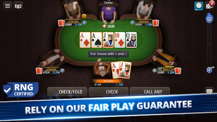 „World Poker Club" vienija milijonus žaidėjų visame pasaulyje. Atraskite daugybę žaidimo renginių ir mėgaukitės sertifikuota sąžiningo žaidimo garantija. Tai geriausias pokerio žaidimas, siūlantis kur kas daugiau nei įprasti stalai ir statymai.